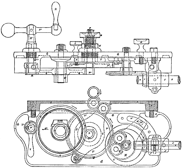 | Gear-Wheels. Willis’ system of one size of rolling circle for trains of interchangeable gearing | 16 | ||