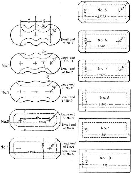 | Rules for finding the chord pitch from the arc pitch; table of natural sines; diametral pitch; finding the arc from the diametral pitch; table of arc and diametral pitches | 3 | ||