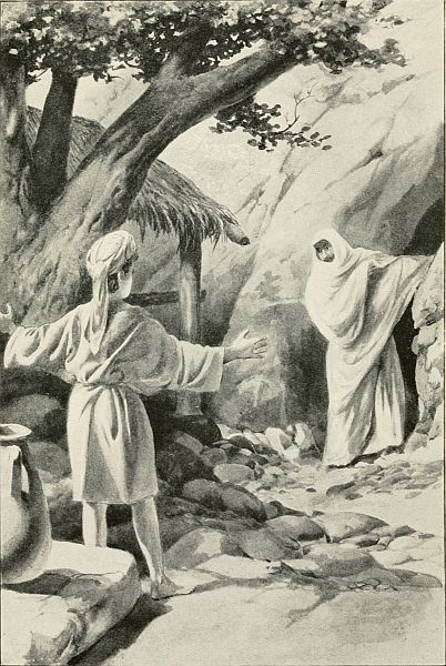 Down this street there sometimes came long caravans; for this was "the highway to the sea,"—the road that led from Egypt to Syria. Strange, dusky faces sometimes passed this way; richly dressed merchant princes with their priceless stuffs from beyond the Nile; heavy loads of Babylonian carpets; pearls from Ceylon, and rich silks for the court of the wicked Herodias, in the town beyond. Fisherman and sailor, rabbi and busy workman passed in an endless procession.