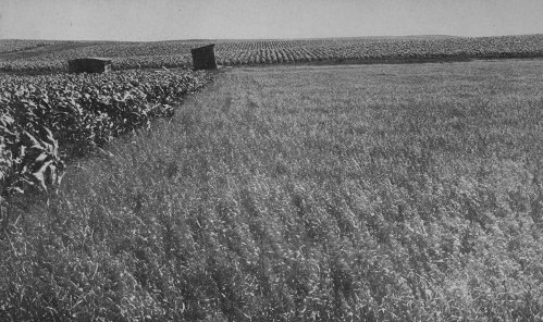 The heavy rains washed the loam from the hills and deposited it on these bottoms. Years ago, when the rolling lands were cleared, and before the excessive rainfall had washed away the loose surface, the highlands were considered most valuable for agricultural purposes, equally as valuable as the bottoms now are. Farther back from the river the more rolling the land became, until some sixteen miles away it was known as the hills, and here, long before I was born, the land had been very valuable. Large barns and fine stately houses—now gone to wreck and deserted—stood behind beautiful groves of chestnut, locust and stately old oaks, where rabbits, quail and wood-peckers made their homes, and sometimes a raccoon or opossum founded its den during the cold, bleak winter days. The orchards, formerly the pride of their owners, now dropped their neglected fruit which rotted and mulched with the leaves. The fields, where formerly had grown great crops of wheat, corn, oats, timothy and clover, were now grown over and enmeshed in a tangled mass of weeds and dew-berry vines; while along the branches and where the old rail fences had stood, black-berry vines had grown up, twisting their thorny stems and forming a veritable hedge[Pg 12] fence. These places I promised mother to avoid as I begged her to allow me to follow the big boys and carry their game when they went hunting.