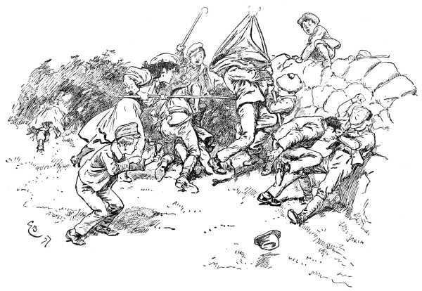 "Come on," she cried presently, picking up her skirts. "I'm so excited I don't know what to do. I can't keep quiet. I believe I can race you yet, for all you're so big and have won a silver cricket bat. How I shall love to see it! Come on, Hugh John, I'll race you to the gipsy camp for a pound of candy!"