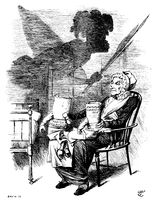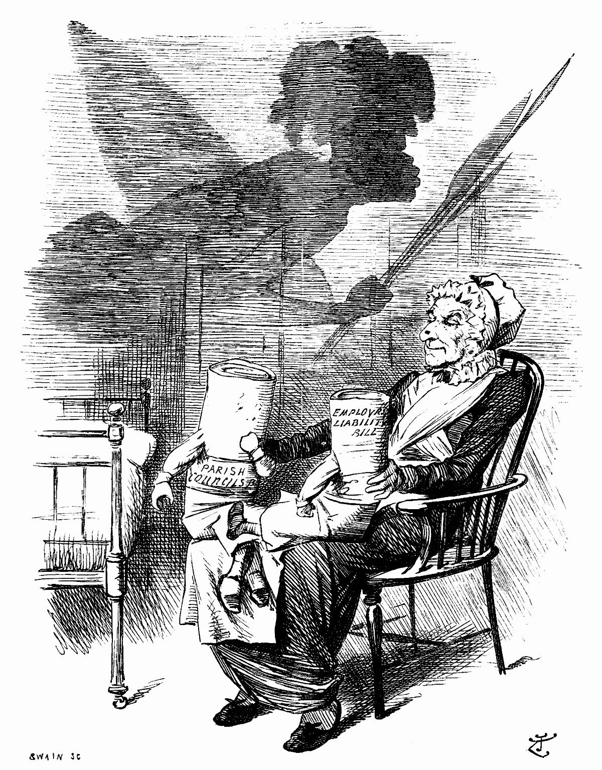 Monday.—Am sick of paying all these doctor's bills. Have just seen an advertisement of The Domestic Doctor, a Dictionary of Medicine, issued in monthly parts. The very thing for a man like me, somewhat delicate. Hasten to secure Part I. Shall now be able to doctor myself and save all fees. Delightful! To celebrate emancipation ask Jones and Robinson to dinner at club. No need for economy now. Jolly good dinner. That club port is excellent.