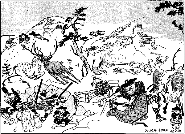 Apparently no end to this road; suddenly seems to disappear; only a dip down a hill; think at first, from steepness, it must be road into Tipperton; but Tipperton is miles away. Getting on for dinner-time; better run down hill; do so; see light flickering at end; probably The Cottage windows; hum "A light in the window for me"; find I've no breath to spare for musical entertainments; shut up, and run. Light comes from farm-house; enter yard cautiously in case of another dog being there. In the twilight see second Old Gentleman; this time in his shirt-sleeves, sitting meditatively on an upturned bucket set on a barn floor. "Is this the way to Burrow-in-the-Corner?" I ask, a little out of breath. Old Gentleman stares; perhaps he is deaf; looks deaf, but find he is only chuckling; repeat question louder. "No," says he, "but that be;" and he waves a horny hand up the wall of a hill down which I had scrambled.