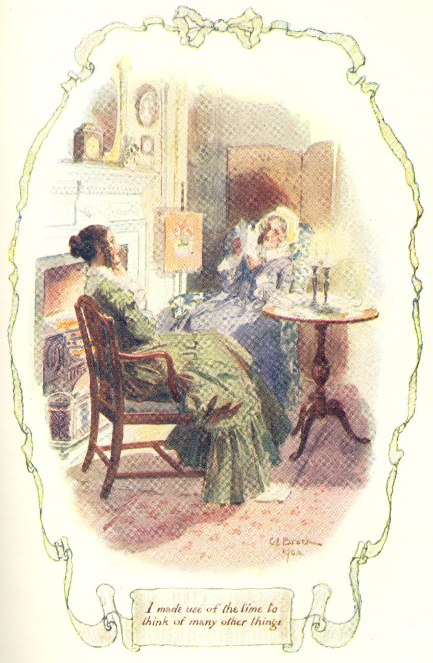 Miss Pole and Miss Jessie Brown had set up a kind of intimacy on the strength of the Shetland wool and the new knitting stitches; so it happened that when I went to visit Miss Pole I saw more of the Browns than I had done while staying with Miss Jenkyns, who had never got over what she called Captain Brown’s disparaging remarks upon Dr Johnson as a writer of light and agreeable fiction. I found that Miss Brown was seriously ill of some lingering, incurable complaint, the pain occasioned by which gave the uneasy expression to her face that I had taken for unmitigated crossness. Cross, too, she was at times, when the nervous irritability occasioned by her disease became past endurance. Miss Jessie bore with her at these times, even more patiently than she did with the bitter self-upbraidings by which they were invariably succeeded. Miss Brown used to accuse herself, not merely of hasty and irritable temper, but also of being the cause why her father and sister were obliged to pinch, in order to allow her the small luxuries which were necessaries in her condition. She would so fain have made sacrifices for them, and have lightened their cares, that the original generosity of her disposition added acerbity to her temper. All this was borne by Miss Jessie and her father with more than placidity—with absolute tenderness. I forgave Miss Jessie her singing out of tune, and her juvenility of dress, when I saw her at home. I came to perceive that Captain Brown’s dark Brutus wig and padded coat (alas! too often threadbare) were remnants of the military smartness of his youth, which he now wore unconsciously. He was a man of infinite resources, gained in his barrack experience. As he confessed, no one could black his boots to please him except himself; but, indeed, he was not above saving the little maid-servant’s labours in every way—knowing, most likely, that his daughter’s illness made the place a hard one.