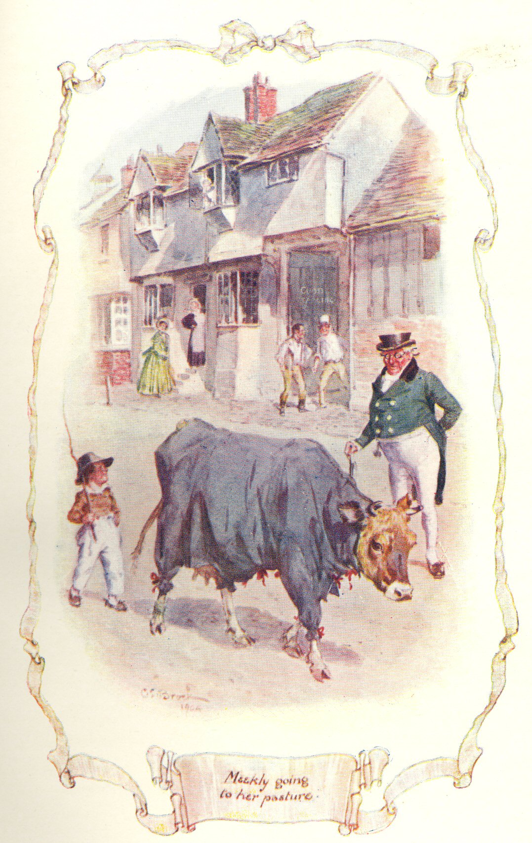 Miss Betsy Barker dried her eyes, and thanked the Captain heartily; she set to work, and by-and-by all the town turned out to see the Alderney meekly going to her pasture, clad in dark grey flannel. I have watched her myself many a time. Do you ever see cows dressed in grey flannel in London?