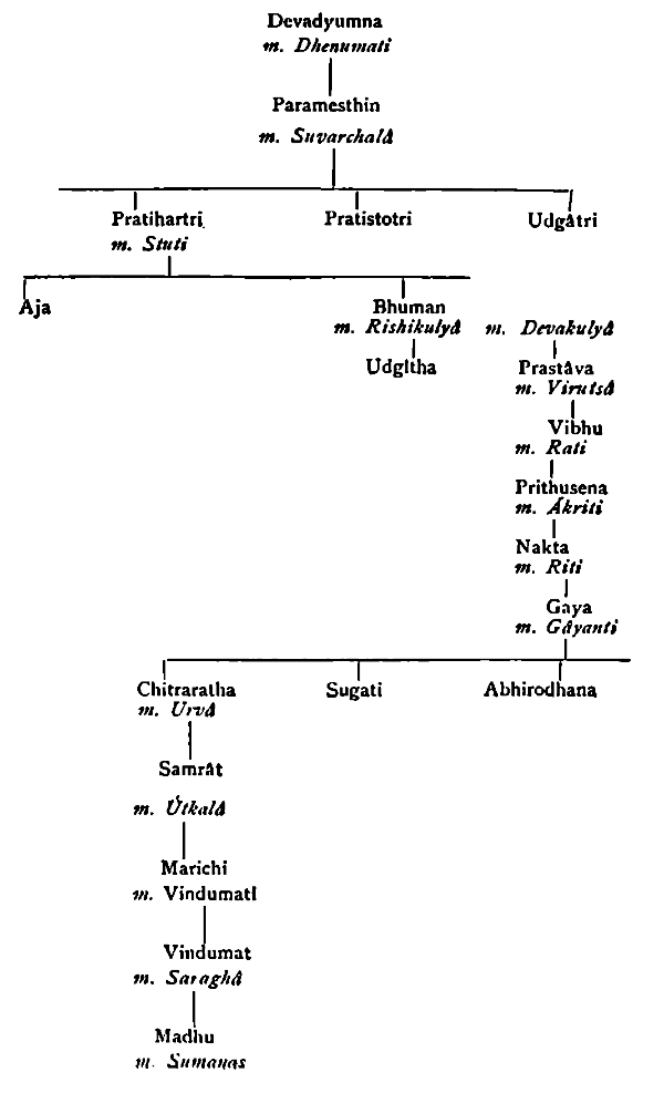 The lines of Kshatriya kings have been given in the Purâma, The lines of Brâhmanas, Vaisyas and Sudras are to be similarly known.
