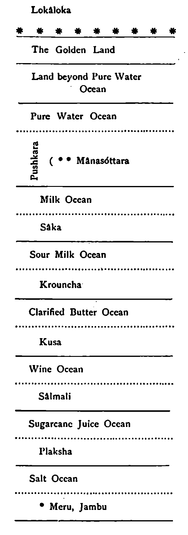 The Vedic school laid great stress on communion with the Devas of Svar Loka or Svarga or Indra Loka, and this was pre-eminently known as Vedic Yajna. The performance of Vedic Yajna led only to a prolonged gratification of kâma in Svar Loka. But however long the period might be, it was limited by the magnitude of the force (Apûrva) which buoyed up the individuality in the Svar Loka. As the Gitâ says, when the merits are exhausted the observer of Vedic Dharma enters again into the transitory plane. The course of births and re-births is then set up anew, with constant transformations and with all the miseries of existence conditioned by personality.
