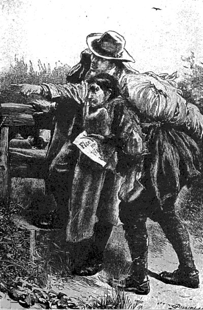 The man, therefore, read it, and looking upon Evangelist very carefully, said, "Whither must I fly?" Then said Evangelist (pointing with his finger over a very wide field), "Do you see yonder wicket-gate?" The man said, "No." Then said the other, "Do you see yonder shining light?" He said, "I think I do." Then said Evangelist, "Keep that light in your eye, and go up directly thereto; so shalt thou see the gate; at which,[16] when thou knockest, it shall be told thee what thou shalt do." So I saw in my dream that the man began to run. Now, he had not run far from his own door, when his wife and children perceiving it, began to cry after him to return; but the man put his fingers in his ears, and ran on, crying, "Life! life! eternal life!" So he looked not behind him, but fled towards the middle of the plain.