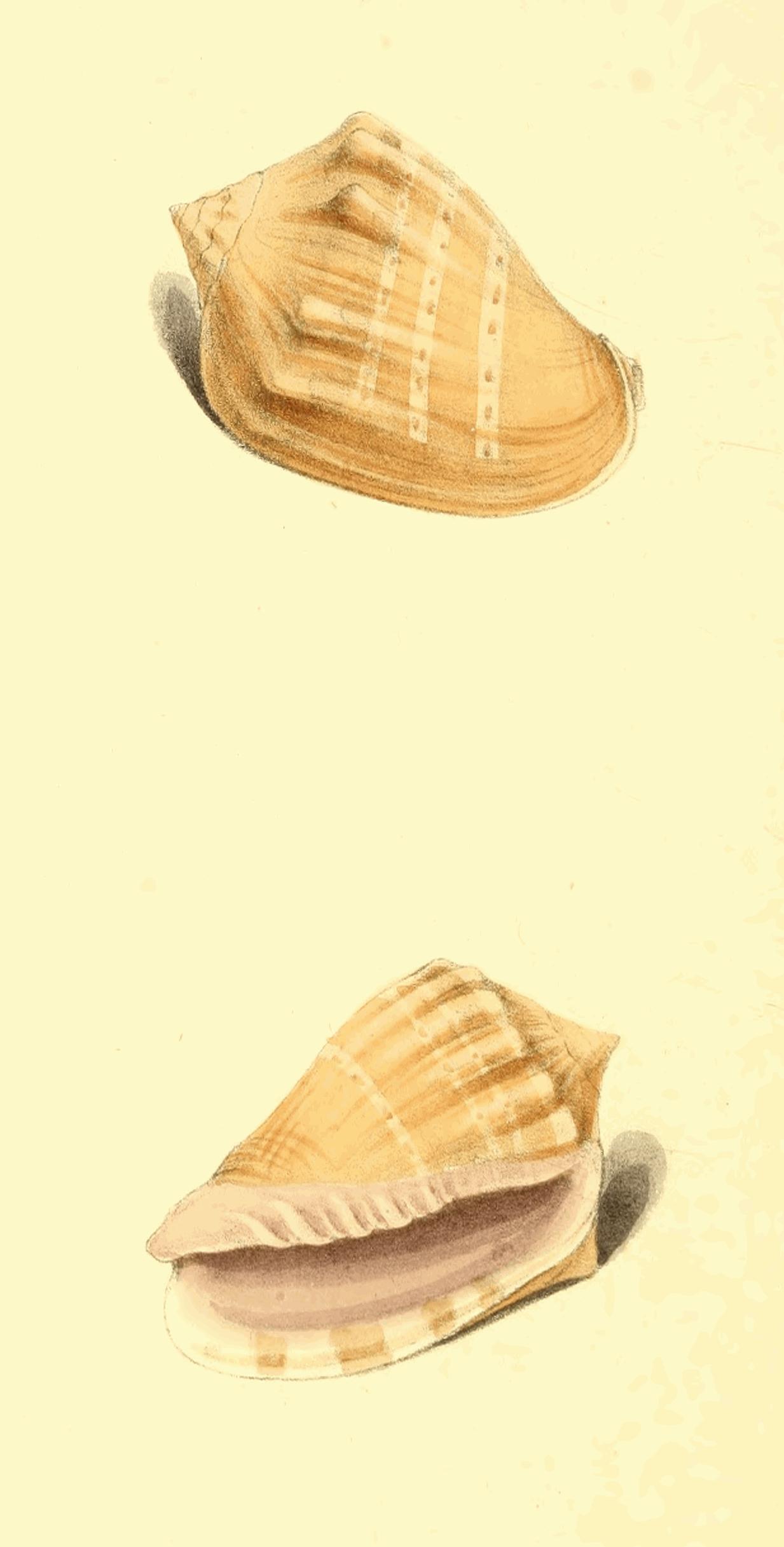 As a further illustration of the last plate, I have been induced to figure this very rare variety, from a specimen I met with at Mrs. Mawe's. In the disposition of its markings, it approaches near to the shell represented in the Ency. Méth. plate 325, f. 6, but the white band in the middle is narrower, and quite destitute of the circular dotted lines there expressed.