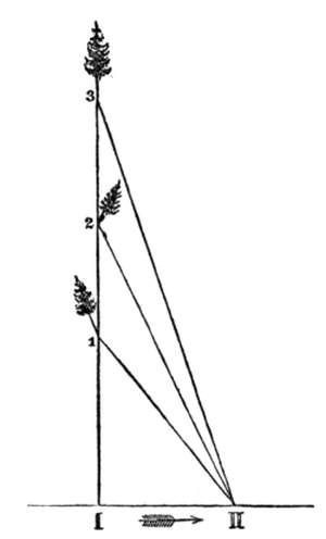 [96] For the popular explanation by unconscious inference the matter is extremely simple. We regard the railway carriage as vertical and unconsciously infer the inclination of the trees. Of course the opposite conclusion that we regard the trees as vertical and infer the inclination of the carriage, unfortunately, is equally clear on this theory.