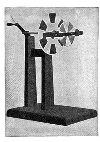 If, now, we affix a thin plate to a wire and insert the plate in the oil sphere, we can, by twisting the wire between our fingers, set the whole ball in rotation. Doing this, the ball assumes an oblate shape, and we can, if we are skilful enough, separate by such rotation a ring from the ball, like that which surrounds Saturn. This ring is finally rent asunder, and, breaking up into a number of smaller balls, exhibits to us a kind of model of the origin of the planetary system according to the hypothesis of Kant and Laplace.