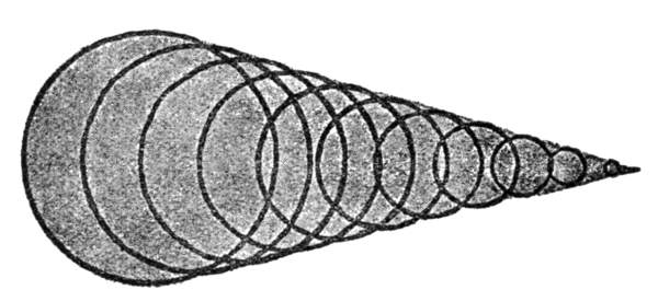 The particles of a liquid cling together. Drops brought into contact coalesce. We can say, liquid particles attract each other. If so, they seek to come[Pg 14] as close as they can to each other. The particles at the surface will endeavor to penetrate as far as they can into the interior. This process will not stop, cannot stop, until the surface has become as small as under the circumstances it possibly can become, until as few particles as possible remain at the surface, until as many particles as possible have penetrated into the interior, until the forces of attraction have no more work to perform.[3]