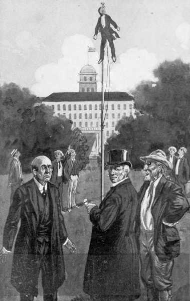 “Well, aren’t we going to make a try for it to-night?” asked one youth, whose hat was decorated with a silk band, yellow and maroon in color. “My uncle, who used to be a football coach here, says the freshmen always used to get it the first week of the term. My uncle——”