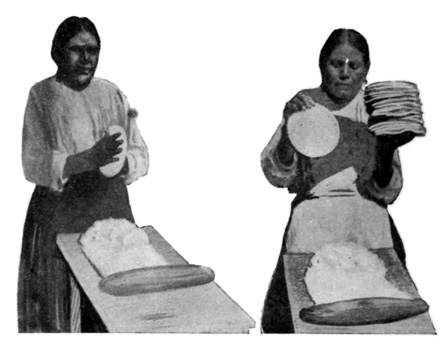 Y. Y. Perez, Public Bakery, Sonora Town, Los Angeles. They refuse to make them any other way and take the same pleasure in making a perfectly thin and round tortilla that puffs up nicely while cooking, as you and I do in trying to make a beautiful loaf of bread. Truly the heart of women are the same the world over. Deep down, no matter what the environment, the desire is always there, to be "loaf givers."
