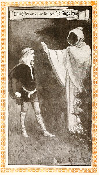 The way was long, and, when he reached the abbey tree, he fell a-trembling, for there a tall wraith stood within the shadows of the yew. No face had it that he could see, its hands no substance, but he met it[23] bravely, saying: "I am Ederyn, come to keep the king's tryst."