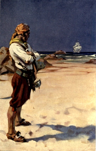 Close by where he stood, a roughly-made grave piled with rocks, with a wooden cross standing at its head, showed that a Christian had been buried there. Any seaman of the time who had seen the man would have rightly concluded that he had been marooned for some crime committed on board the ship that was sailing away, and their judgment would have been a correct one.