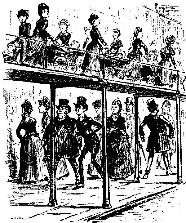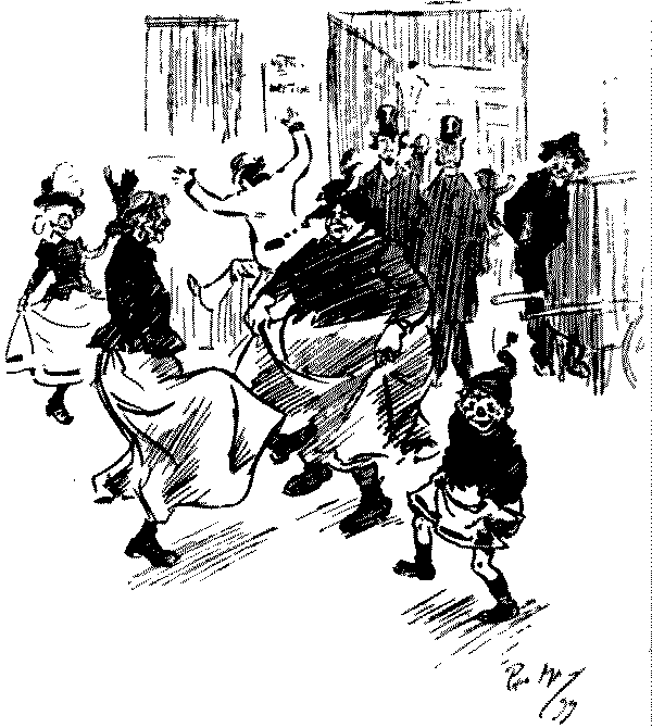 In the sixty-six years of his existence Mr. Punch has at one time or another touched upon every phase of life in London. He has moved in high society; he has visited the slums; he has been to the churches, the theatres, the concert rooms; he has travelled on the railways, in the 'buses and the cabs; he has amused himself on 'Change; he has gone shopping; he has lounged in the clubs, been a shrewd watcher and listener at the Law Courts, dined in the hotels and restaurants, sat in Parliament, made merry in the servants' hall, loitered along the pavements with a quick eye and ear for the wit and humour of the streets, and dropped in casually, a genial and observant visitor, at the homes and haunts of all sorts and conditions of men and women.