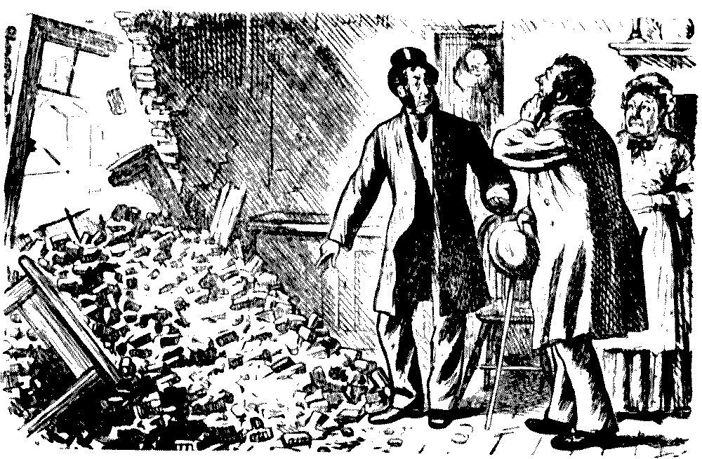 "I 'ear that Tholomon Arons 'as 'ad 'is shop burnt out!"