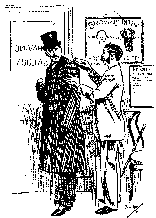 Barber. "Your 'air's getting very thin on the top, sir. I should recommend our wash."