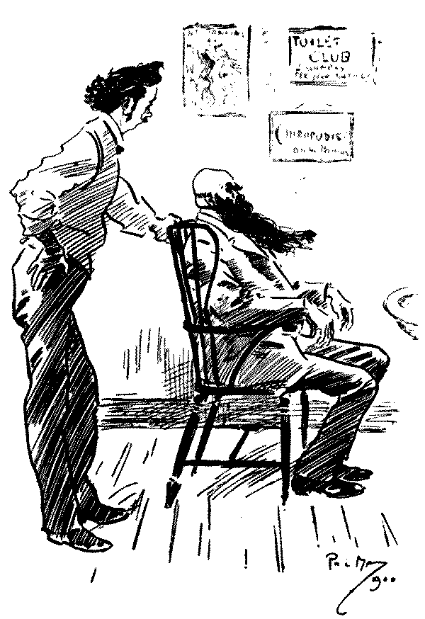 Hairdresser. "Have you tried our tonic lotion?"