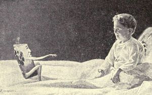 What Jack's response to this curious remark would have been no one knows, for just then a most strange thing took place. Jack Frost and his palace in an instant faded completely from view, and Jimmieboy in surprise closed his eyes, rubbed them with both his fists, and then opened them again, to find himself in his little cot in the nursery, the gas-stove burning merrily and winking at him from the fire-place, and the friendly voice, as usual, nowhere to be seen, and now not even to be heard.