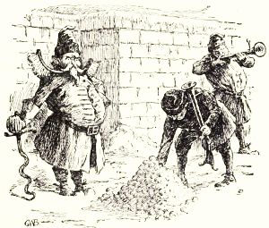 "Lower your lantern down here and we'll see. He's asleep over here in a brass bedstead," replied the other.