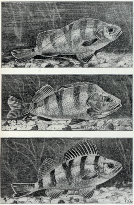 Größere wirtschaftliche Bedeutung als der Flußbarsch besitzt sein äußerst wohlschmeckender und dabei grätenarmer größerer Vetter, der Zander oder Schill (Luciopérca sándra), dessen wisschenschaftlicher Name »Hechtbarsch« vortrefflich gewählt erscheint, denn in der Tat vereinigt dieser Fisch äußerlich wie biologisch die Eigenarten [27] beider Familien in sich. Mehr noch als der Flußbarsch ist er auf recht sauerstoffreiches Wasser angewiesen, worauf schon der ungemein zarte Bau seiner Kiemen hindeutet. So findet er sich besonders zahlreich in weiten, aber flachen Wasserbecken, die durch stürmische Winde ab und zu gründlich aufgewühlt und dadurch mit dem Sauerstoff der Luft gesättigt werden, wie dies z. B. beim Kurischen Haff der Fall ist, wo deshalb auch ein sehr lohnender Zanderfang noch heute betrieben wird, wenn auch die Zeiten, wo man die massenhaft erbeuteten wertvollen Zander lediglich zum Trankochen benutzte, dort längst vorüber sind. Ebenso ist der Zander als »Fogosch« ein Charakterfisch des Plattensees und bildet, auf dem Rost gebraten, eine beliebte ungarische Nationalspeise. Die so zahlreich in die Berliner Markthallen gelangenden Zander dagegen entstammen größtenteils dem Wolgagebiet, wo eine besondere Art, der Berschik (Luciopérca volgénsis) auftritt, die neuerdings auch durch das Schwarze Meer ins Donaugebiet einzuwandern beginnt. Auch der Zander ist ein ausgesprochener, überaus freßgieriger Raubfisch, der aber seines engen Schlundes und Magens wegen doch nur kleinere Fische zu bewältigen vermag. Der Angler wird ihm gegenüber nur dann Erfolg haben, wenn er einen lebenden Köder verwendet und auf die große Furchtsamkeit und Leckerhaftigkeit dieses Fisches genügend Rücksicht nimmt. Dann aber bietet gerade das Zanderangeln viel Anregung und hohen sportlichen Genuß. Gleich dem Flußbarsch treibt sich der Zander gern in kleinen Trupps umher, und es ist merkwürdig, wie diese im Wasser oft förmlich exerzieren und wie auf Kommando gemeinsame Schwenkungen vollführen. Die ganz jungen Zander fressen außer tierischen Substanzen auch massenhaft schwebende Algen, und selbst die Alten scheinen Pflanzenkost nicht völlig zu verschmähen. Jedenfalls ist es auffallend, daß die in Zandermägen vorgefundenen Fische fast immer in allerlei Pflanzengrün eingehüllt sind, wobei es einstweilen dahingestellt bleiben muß, ob dieses etwa zur Beförderung der Verdauung mit verschluckt wurde. Von anderweitigen Angehörigen der Barschfamilie, die sich durch das Vorhandensein von zwei selbständigen, stacheligen Rückenflossen kennzeichnet, seien hier noch kurz erwähnt der schlank gebaute Streber (Aspro stréber), der bei uns gleich dem Zingel (Aspro zíngel) auf das Donaugebiet beschränkt ist, und der bisher nur in fließendem Wasser gefundene Schrätzer (Acerína schráetser). Alle diese [28] Arten sind zu klein und treten zu vereinzelt auf, als daß sie wirtschaftliche Bedeutung gewinnen könnten, obschon ihr Fleisch recht gut mundet. Beim Zingel hat Kammerer interessanterweise einen ganz verwickelten Nestbau beobachtet, indem das Tier eine kreisförmige Grube im Sande auswirft, in der Grubenmitte mit der Schnauze Steine zusammenschiebt, und zwischen die Steine mühselig herbeigeholte Algenwatte einklemmt. Durch Hineinarbeiten und Drehen des Körpers gewann diese Algenmasse mützenförmige Gestalt, die durch quergesteckte Reiser klaffend erhalten wurde. Der Schrätzerlaich erscheint zwar ebenfalls wie beim Flußbarsch zu Schnüren angeordnet, aber die Eier liegen nicht in einem gemeinsamen Schlauch, sondern sind nur reihenweise dicht nebeneinander auf dem Boden festgeklebt. Dieser stachelige Fisch, der dem etwas Besseres erhoffenden Angler manche Enttäuschung bereitet und ihm beim Auslösen manchen blutigen Stich beibringt, gilt bei den Donaufischern als ein arger Schädling der Fischbrut, während Streber und Zingel, die man in kleinen Geschwadern ruckweise durchs Wasser schießen sieht, völlig harmlos sind und sich lediglich von Mückenlarven, Wasserasseln, Flohkrebsen und Erbsenmuscheln, namentlich aber von Würmern ernähren. Sie schaufeln diese förmlich aus dem Boden hervor und drehen sich von großen Exemplaren maulgerechte Stücke ab, indem sie sich wie die Molche hin und her werfen und um die eigene Achse wälzen. Neuerdings sind auch zwei nordamerikanische Barscharten ihrer Schnellwüchsigkeit halber mit Erfolg in Deutschland eingebürgert worden, der Schwarzbarsch und der Forellenbarsch, die sich namentlich in kleinen Teichen mit festem Untergrunde recht gut entwickeln und hier die Rolle des Hechts vertreten können. Wichtiger aber als sie alle ist trotz seiner Kleinheit (er bringt es höchstens auf 1/2 kg Körpergewicht) der Kaulbarsch (Acerína cvernua), ein gelbbrauner oder olivengrüner Bursche mit feinen Pünktchen, die das Volk in Süddeutschland für Läuse hält und deshalb den Fisch, der von jeher gern in den Klöstern verspeist wurde, »Pfaffenlaus« getauft hat. Noch furchtbarer als andere Barscharten ist diese mit Stacheln bewehrt, so daß die Fischer von ihr sagen, man dürfe sie nur mit blechernen Handschuhen anfassen, und kenntlich wird der gedrungen gebaute Kaulbarsch sofort daran, daß die beiden Rückenflossen nicht scharf getrennt sind, sondern ineinander übergehen. Er führt eine zigeunerartige und nomadenhafte Lebensweise, [29] erscheint aber zu bestimmten Jahreszeiten in gewissen Gegenden in ganz fabelhafter Menge. Als ich vor einer Reihe von Jahren am Kurischen Haff wohnte, wurden dort nicht selten solche Unmengen von Kaulbarschen gefangen, daß man mit dem Überfluß bisweilen nichts anderes anzufangen wußte, als ihn als Dung auf die Felder zu fahren. Heute wird das wohl auch anders geworden sein, denn Kaulbarsch gibt die leckerste Fischsuppe, die sich nur denken läßt. In den langen und harten Wintern lernte ich damals dort auch eine ganz eigentümliche Fangweise kennen, die besonders dem Kaulbarsch galt. Wenn das weite