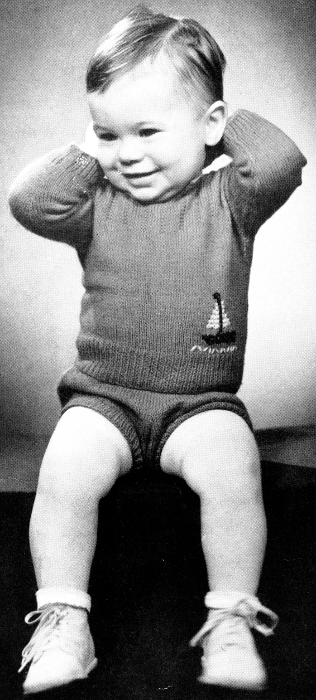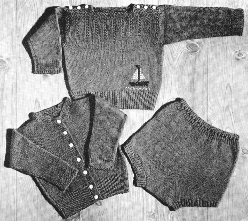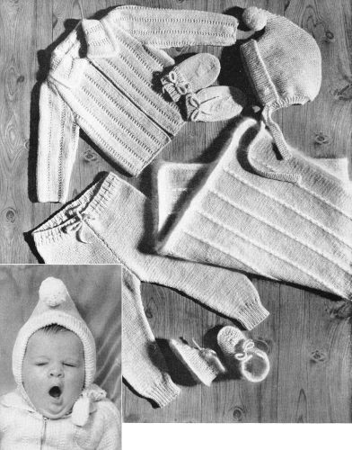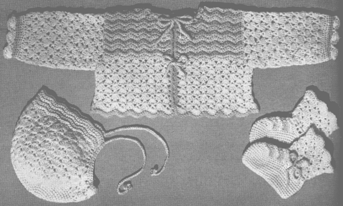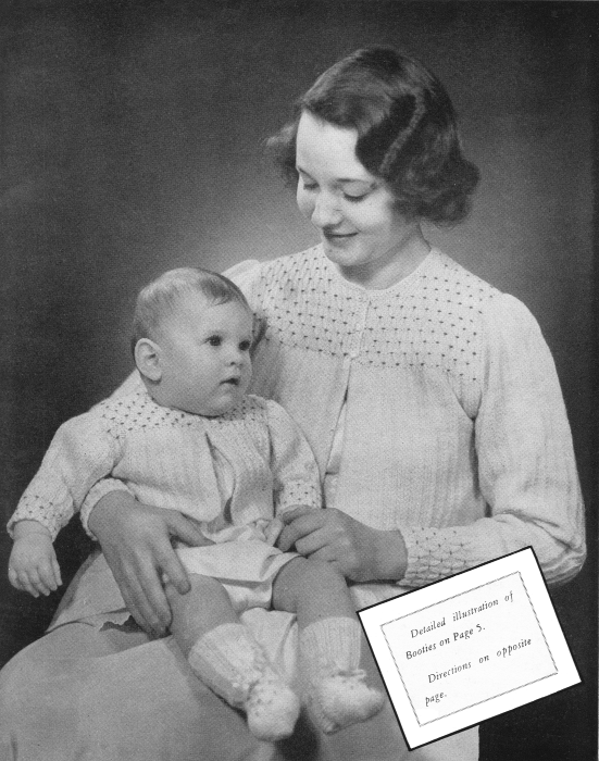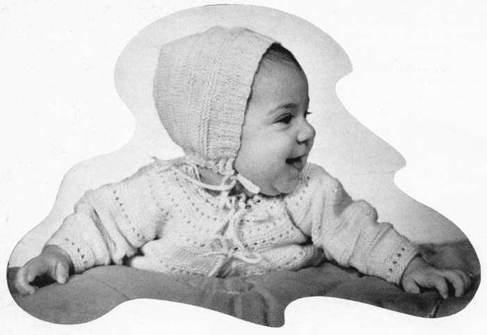 Scale—13 sts to 2 inches, No. 7 needles. Size 34 mother's, 3 months, baby's.