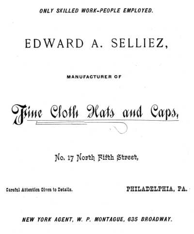 Prior to 1846 these goods were sold in New York by Leland, Mellen & Co., at that time the largest wholesale hat firm in the country. Mr. Mellen retired from business in 1851. In reply to a personal inquiry of the writer in the year 1874, Mr. Mellen wrote from Framingham, Mass., as follows: