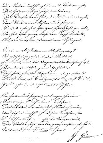 Jugendgedicht, nach Heines eigenhändiger Niederschrift im Besitz der Königlichen Bibliothek zu Berlin.