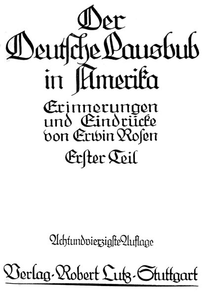 Aber wenn ich heute auf die drei Jahre von 1894-1897 zurückblicke, die dieser erste Teil meiner Erinnerungen aus der Amerikazeit schildert, so will es mir scheinen, als sei der Leichtsinn gar ehrlich erkauft gewesen! In ehrlicher Münze zahlte der Lausbub mit Hunger und Elend und harter Arbeit für seinen jungfrischen Optimismus, denn grimmiger Lebenshumor will es, daß sich mit zügellosem Leichtsinn starke Kraft paaren muß, soll Freund Optimist im Leben bestehen. Und in dieser Kraft stecken Möglichkeiten.
