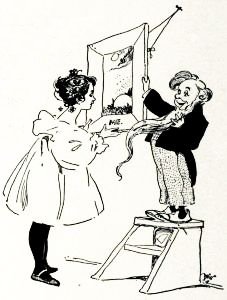 "I'm not in the school-teacher business, and so I shan't tell you," said the Unwiseman, with a wave of his hand. "Besides, I really don't know myself—though I'm not a little girl. But I'll tell you one thing. An Alpine stock is a thing to climb Alps with, and a thing you can climb an Alp with ought to help you climbing into a kitchen window, because kitchen windows aren't so high as Alps, and they don't have snow on 'em in spring like Alps do."