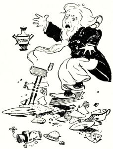 "Yes," said the Unwiseman. "It's very nice, particularly if you are one of my friends, and come in for your share of the[Pg 190] left-over eclaires—as, of course, you and Mollie will do. It all grew out of my potery business, too. You see, I didn't find that people who wanted potery ever bought it from a street-corner stand, but from regular potery peddlers, who go around to the newspaper offices and magazines with it, done up in a small hand-bag. So I gave up the stand and made a small snatchel——"