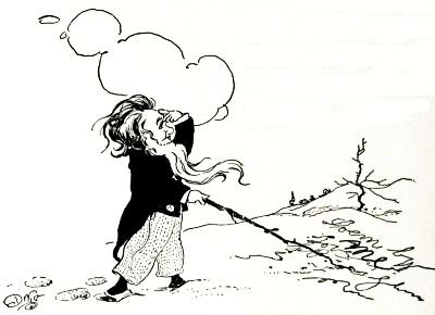 "Oh, it was easy enough for them," said Bopeep. "There were four of them, and one went north, one south, one east, and one west. If they had all run off together I could have run away with them, but as it was all I could do was stand still and let them go. I love them all equally, and since[Pg 15] I couldn't favor any special one, or divide myself up into four parts, I had to let them go."