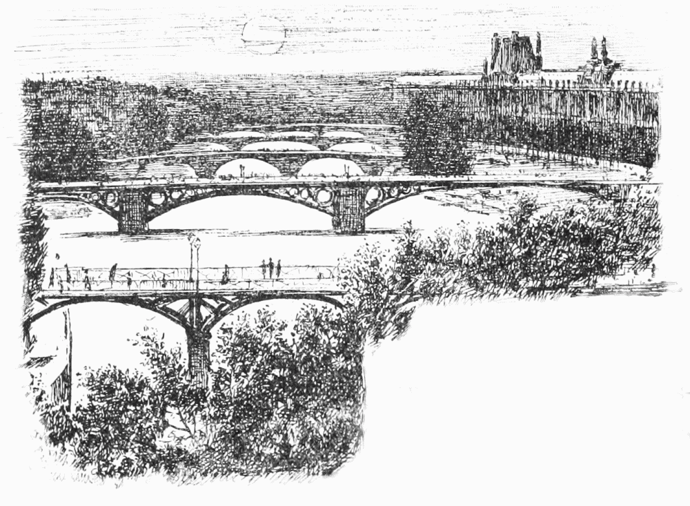 Taffy and his wife got up and leaned on the window-bar and looked out on the deserted boulevards, where an army of scavengers, noiseless and taciturn, was cleansing the asphalt roadway. The night above was dark, but "star-dials hinted of morn," and a fresh breeze had sprung up, making the leaves dance and rustle on the sycamore-trees along the Boulevard—a nice little breeze; just the sort of little breeze to do Paris good. A four-wheel cab came by at a foot pace, the driver humming a tune; Taffy hailed him; he said, "V'là, m'sieur!" and drew up.