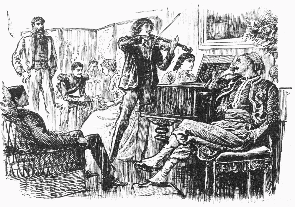"Ah! bon—connais bien, celui là; vous savez—c'est lui qui joue du violon aux Mouches d'Espagne! Il a soupé, l'bourgeois; n'est-ce pas, m'sieur? 'petits bonheurs de contrebande,' hein?... ayez pas peur! on vous aura soin de lui! il joue joliment bien, m'sieur; n'est-ce pas?"
