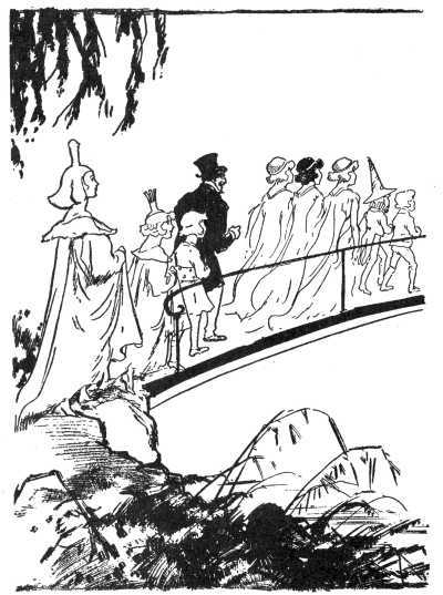 "Another part of this machinery," explained the white-haired Adept, "is used to extend the bridge from the island to the mainland. The steel bridge is in 260 a room much like that in which the boats are kept, and at Coo-ee-oh's command it would reach out, joint by joint, until its far end touched the shore of the lake. The same magic command would make the bridge return to its former position. Of course the bridge could not be used unless the island was on the surface of the water."