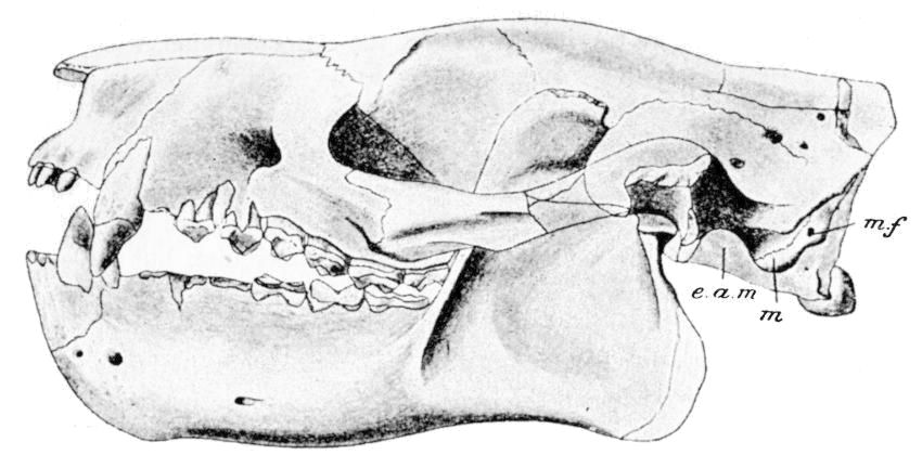 In preparing my accounts of both living and extinct forms I have nearly invariably consulted the original authorities, and have often supplemented or verified these accounts by my own dissections at the Zoological Society's Gardens. My rule has not, however, been invariable in this matter, inasmuch as there exist two recent and trustworthy text-books of Mammalian Palaeontology—Professor Zittel's Handbuch der Palaeontologie, and Dr. A. Smith Woodward's manual, Outlines of Vertebrate Palaeontology, in the Cambridge Biological Series. Where the name of a genus only or its range, or merely one or two facts about it, are mentioned, I have not thought it necessary to go further than these two works. But a good deal has been done even since the appearance of these two volumes which it will be found that I have not ignored.