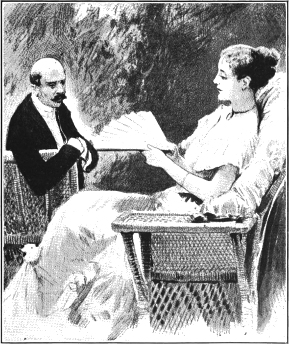 "I'm so glad it's you!" she exclaimed, clasping her hands together, as though in ecstasy. "Those old women bother me to death, and there have been twelve of them here this morning. Colonel Oldfield told me all about you yesterday, and I was interested at once. We must have a good long talk. Oh, do listen to that dreadful creature; she talks in scales beginning at the lower C and going up to no possible note in the music of heaven or earth. I suppose she won't go away."