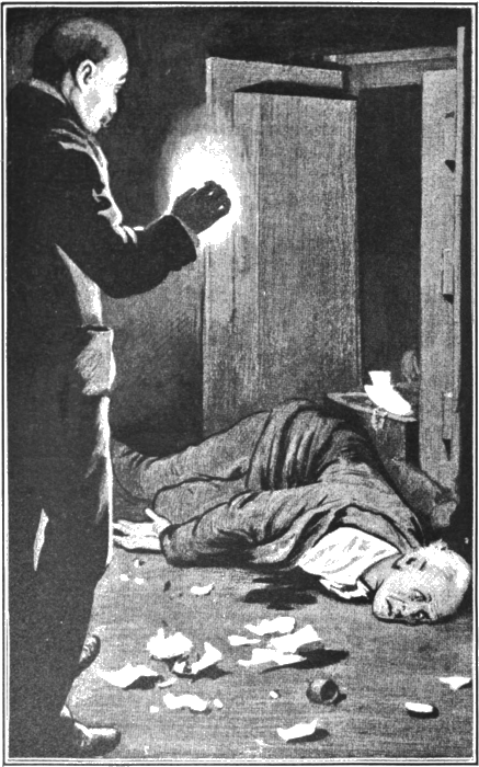 For some moments the struggle was appalling. I had him gripped about the waist with my left arm, my right clutching the hand wherein he held the pistol. He, in turn, put his left hand upon my throat and threw his right leg round mine with a sinewy strength that amazed me. Thus we were, rocking like two trees blown in a gale, now swaying towards the window, now to the door, now crashing against the table, or hurling the papers and the ink and the ornaments in a confused heap, as, fighting the ground foot by foot, we battled for the mastery. But I could not cry out, for his grip about my neck[ 27] was the grip of a maniac; and as it tightened and tightened, the light grew dim before my eyes and I felt that I was choking. This he knew, and with overpowering fury pressed his fingers upon my throat until he cut me with his nails as with knives. Then, at last, I reeled from the agony of it; and we fell with tremendous force under the window, he uppermost.