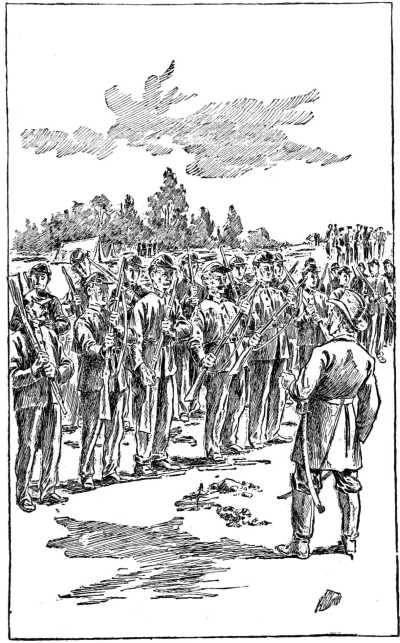 Throughout its bellicose career, when occasion permits, the regiment renews its daily practice of this imposing observance. Leaf by leaf the roses fall; day by day the snare-drums call. But practice makes perfect. Within a twelvemonth after muster-in the alert, alive and agile volunteers will have become so facile in their exercise that every motion is pivotal and simultaneous—a thousand with a single joint who hear and move as one. The veteran reverts to his plebe camp experiences even as the aged grandsire recalls the sorrowful coffee and sad biscuit of early matrimonial days. The halo of romance encircles them still!