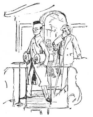 "One day in midwinter the train stopped at a way station in the West, and he had five minutes to wait. Mr. Nye's roving eye had discovered that the plush-leather pillows of the sofa in the smoking compartment of the car we were riding in were unattached. Without a word he picked up the leather cylinders and placed one under each arm, with the tassels to the front. He was an invalid in looks as well as in strength, and when he appeared upon the platform thus equipped the astounded natives watched him with silent, sympathetic curiosity as he strode up and down, apparently seizing261 the opportunity for a little much-needed exercise. The rest of us had to hide to keep from exploding, but he was utterly oblivious to the stares and comments until he returned to the car. No explanation was vouchsafed, and the primitive inhabitants of that town are probably still wondering what horrible malady compelled that invalid to wear those outlandish cushions.