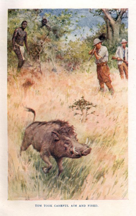 The next two days were spent very agreeably in shooting expeditions into the wild country beyond the plantation. Captain Goltermann turned out to be a crack shot, and the greater number of the antelopes and buffaloes which the sportsmen brought down fell to his gun. Tom was all anxiety to get a shot at a lion or even an elephant, which Reinecke told him were to be found in parts of the Plateau; but the Germans were indisposed to take the long journeys that were necessary to reach the habitats of these more dangerous game: Goltermann's visit was to be only a short one.