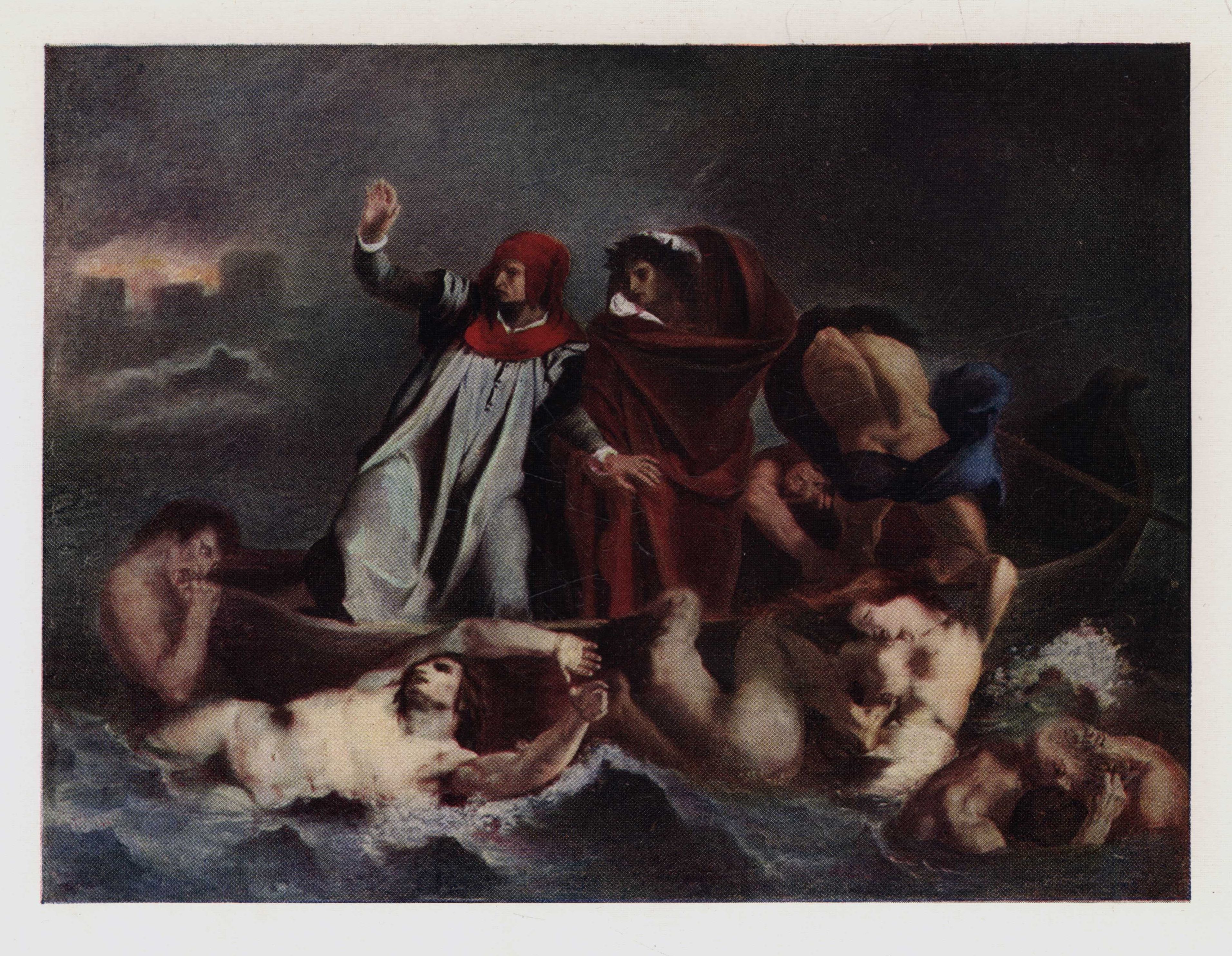 With the "Dante and Virgil" of 1822, Delacroix definitely dissociated himself from the frigid, lifeless tradition of the David School, of which Ingres was soon to become the acknowledged leader. "That School of Ingres," Delacroix once expressed himself on one of those rare occasions when he broke through his habitual reticence concerning his critical views on his contemporaries, "wants to make painting a dependency of the antiquaries; it is pretentious archæology; these are not pictures." "Cameos are not made," he wrote on another occasion, "to be put into painting; everything ought to keep its proper place."