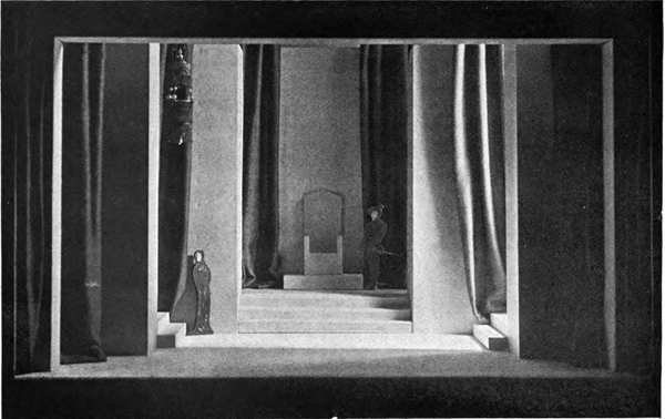A shallow cyclorama. The simple design forms an effective background for the grouping of the figures.