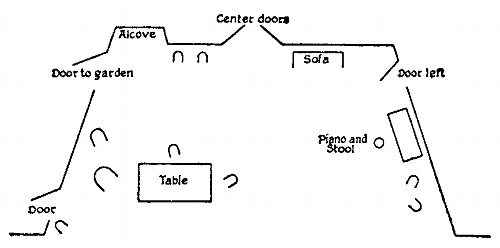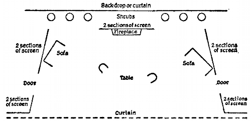 It cannot be too strongly urged that from the very first as many "props", as much furniture [pg 13] or as many set pieces as possible (depending on whether the set is an indoor or outdoor one), should be used by the actors. In this way they will be better able to associate their thoughts, words, and gestures with the material objects with which they will be surrounded on the fatal night. If this is impracticable, that is, if most of these objects cannot be secured from the first, then at least suitable substitutes should be used. The presence of such fundamentally important articles as the wall in Rostand's "The Romancers", and the dentist's chair in Shaw's "You Never Can Tell", when used from the first rehearsals, always minimizes the danger of confusion of lines or business at the last moment.