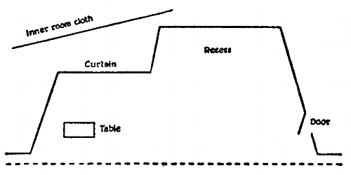 The first rehearsal should be "called" as soon as possible after the cast has been selected and a place chosen in which to work. If the play is to be performed in a regular theater, it is wise to block out the general action and have at least the first two or three rehearsals on the stage. It would be still better if all the rehearsals could be conducted there, but as this is seldom possible, the stage manager should take its dimensions and secure some room as near the size of the stage as he can find. A room too large or too small, or not the requisite shape, is more than likely to confuse the actors. As many of the essential "props" and articles of furniture as possible should be used from the very first, in order to accustom the actors to work under approximately [pg 23] the same conditions as on the occasion of the performance.