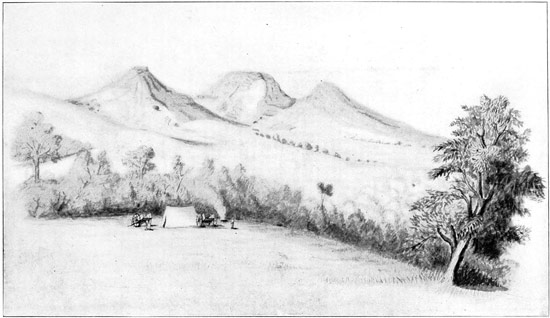 [13] "It rises to the west of the Black Mts., across the northern extremity of which it finds a narrow, rapid passage along high perpendicular banks, then seeks the Missouri in a northeasterly direction, through a broken country with highlands bare of timber, and the low grounds particularly supplied with cottonwood, elm, small ash, box, alder, and an undergrowth of willow, red-wood, red-berry, and choke-cherry.... It enters the Missouri with a bold current, and is 134 yards wide, but its greatest depth is two feet and a half, which, joined to its rapidity and its sand-bars, makes the navigation difficult except for canoes." ("Lewis and Clark," ed. 1893, pp. 267, 268.)