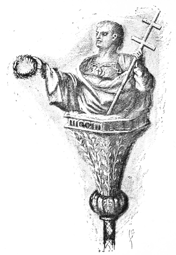 The kings were not the only persons who profited by the virtues of the relics; the first president of the parlement was so far privileged that he could have them brought to him on his death-bed; and on Quinquagesima Sunday they were exposed at the central window of the chevet for the good of the public in the street. The châsse containing the relics had no less than ten locks, the keys thereof being in the custody of the kings until the reign of Louis XIII.; but while that monarch was at Lyons, a fire broke out in the chapel (26th July, 1630), and the doors of the châsse had to be broken open, a disaster which led to a change in the custodian, the president of the Chambre des Comptes being substituted for the sovereign. This worthy lived opposite; and it was also his duty to keep the relics clean, assisted of course by a vast number of other presidents and officials. It was the duty, or the privilege, of the kings to mount the little winding staircase at the side of the altar, and to exhibit the relics to the people gathered in the chapel below. S. Louis probably ofttimes walked up the steps on the left for this purpose (the right-hand staircase is modern); and on Good Friday, 1423, the Duke of Bedford, as regent of France for Henry VI., gave the blessing with the relics. In 1575, on the 10th July, a great theft took place of a portion of the cross which was frequently shown to the people (not the piece in the principal châsse), and this in spite of six guards who "allans et venans toute nuict par icelle, tant pour la garde des sainctes reliques comme du lieu." This was looked upon as a great calamity by many people; but by some of the incredulous was thought to be a feint of Henri III., who had permitted the relic to be sent to Italy as security for some money borrowed by that good daughter of the Church, the Queen-mother, Catherine de'Medici. In 1793 the destruction of the châsses and the dispersion of the relics was ordered by the Convention, and carried out by the notorious constitutional bishop Gobel. We cannot but lament the loss to art of these reliquaries; whether, reading over the list in full of the relics given by Canon Morand, we need sigh over their destruction, is another matter. They had swollen in number since S. Louis' time, and besides a portion of the true cross, the crown of thorns, and the lance, there was the rod of Moses, the cross of victory borne by the Emperors of the East, part of the purple mantle, the reed, and other instruments of the Passion, the linen with which Our Lord wiped the Apostles' feet, the sponge, the handcuffs, the holy blood, the Virgin's veil and a piece of her hair, an imprint of the face of Our Lord, a piece of the Holy Sepulchre, and the upper part of the head of S. John Baptist. All these objects, and one or two others which it is needless to mention, were enclosed in the reliquaries which either stood or hung in the great châsse. But other valuables were kept elsewhere. There existed up to the reign of Louis XVI. an elegant little sacristy upon the north-east side, having two storeys, in which were deposited deeds, charters, and gold and silver vessels for the use of the altar. In it was kept the splendid agate, now in the Bibliothèque Nationale, representing the Apotheosis of Augustus, which was absolutely presented to the people as a pax upon great festivals, until de Peiresc, Councillor of the Parlement of Provence, about 1619, discovered the mistake, and the so-called "Triumph of Joseph" became acknowledged to be the "Apotheosis of Augustus." A careful drawing of the cameo was made by de Peiresc's friend Rubens, which was engraved by Luc Vosterman of Antwerpen. It was called in the inventory of the chapel le Grand Camahieu and the Agate de Tibère; it is, indeed, the largest known, and is of most exquisite workmanship. The whole family of the Cæsars is represented; some on earth, some in Heaven. The cracks in it are mentioned in the inventory of 1480, and it is described as: Item unum pulcherrimum camaut in cujus circuitu sunt plures reliquiæ. The cameo is supposed to have been one of the treasures brought by S. Louis from Constantinople. In 1343, Philippe VI. sent it to the Pope who had desired to see it, but Charles V. restored it to the chapel in 1379, and then the chapter made their possession certain, by engraving upon the socle: ce camaieu bailla à la Sainte-Chapelle du Palais, Charles cinquième de ce nom, roi de France, qui fut fils du roi Jean, l'an MCCCLXXIX. The Byzantine mounting, described by Tristan de Saint-Amant, was melted up when the cameo was stolen, in 1804: Car les quatres évangélistes sont représentés de part et d'autre du châssis ou tableau d'or, dans lequel cette pierre est enchâssée.