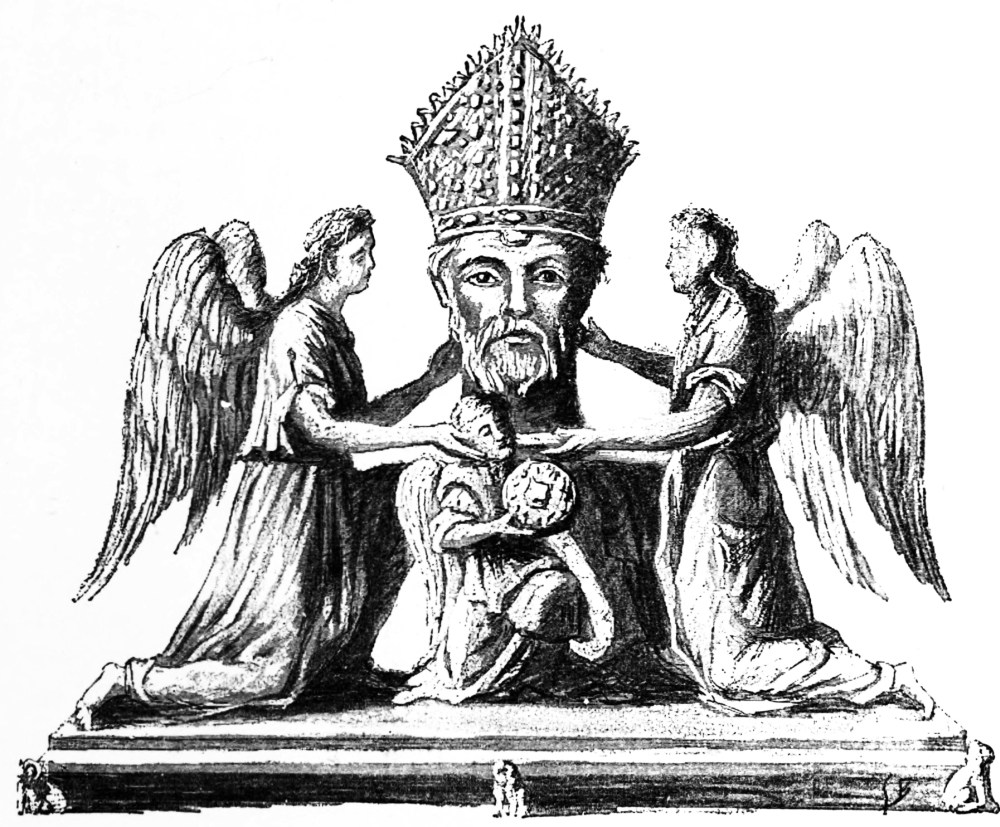 [37] "Ensépouturé fut en l'église Saint-Denis en France à cui il avoit donnez maint biau don, mis fu en costé le mestre autel en un riche sarcu d'alebastre." (Chronicle of S. Denis.) And yet, soon after Charles's death, S. Eucher is supposed to have seen, by revelation, the sufferings of the Maire du Palais in Hell, where for his sins he was precipitated before the Day of Judgment. The tomb was opened in the presence of Bishop Eucher, Boniface the legate, and Fulrad, abbot of S. Denis, when behold! a great dragon jumped out, and the coffin had the appearance of having been burned.